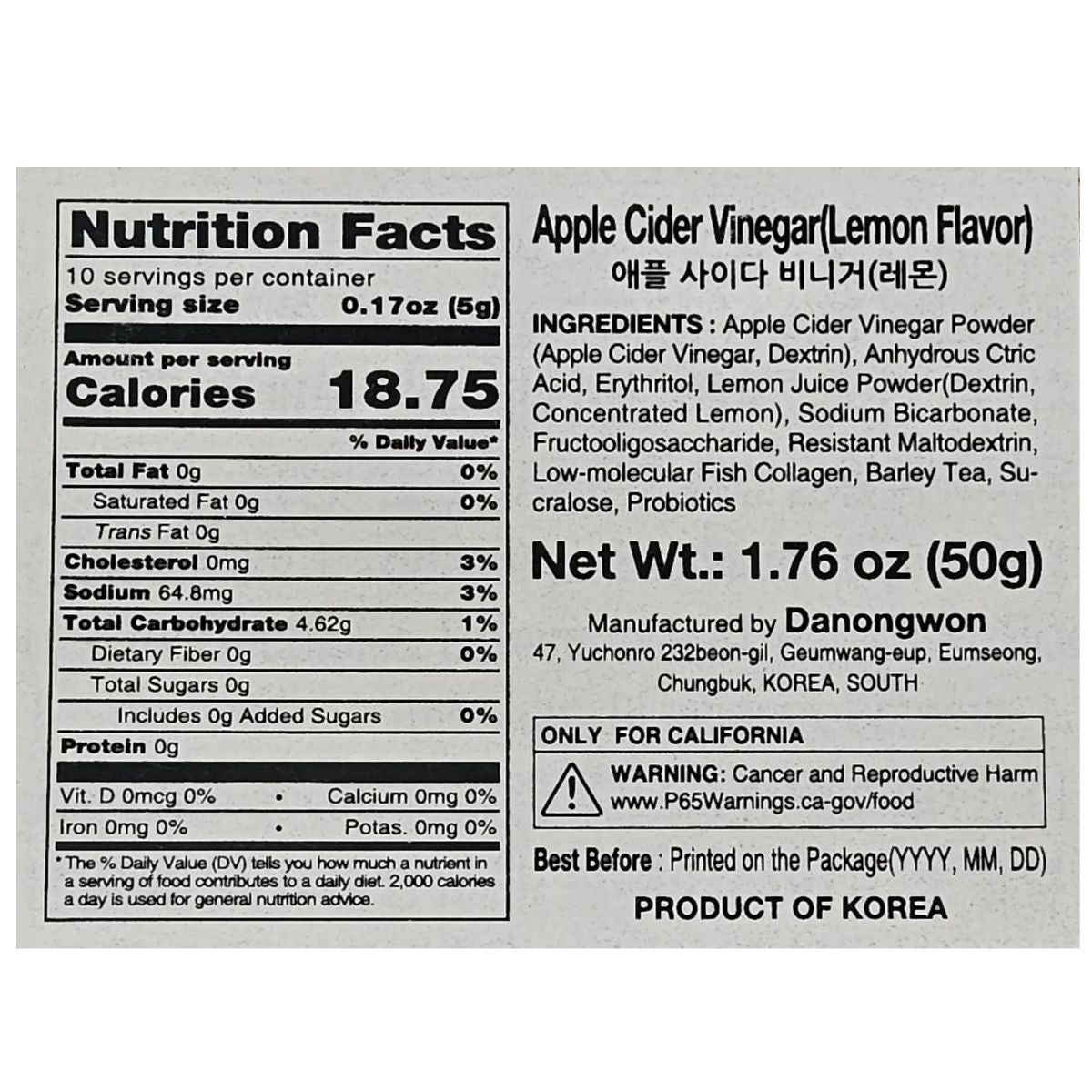 Daily Kombucha Apple Cider Vinegar (Lemon) Tea 5g x 10 Sticks – Instant Probiotic Drink