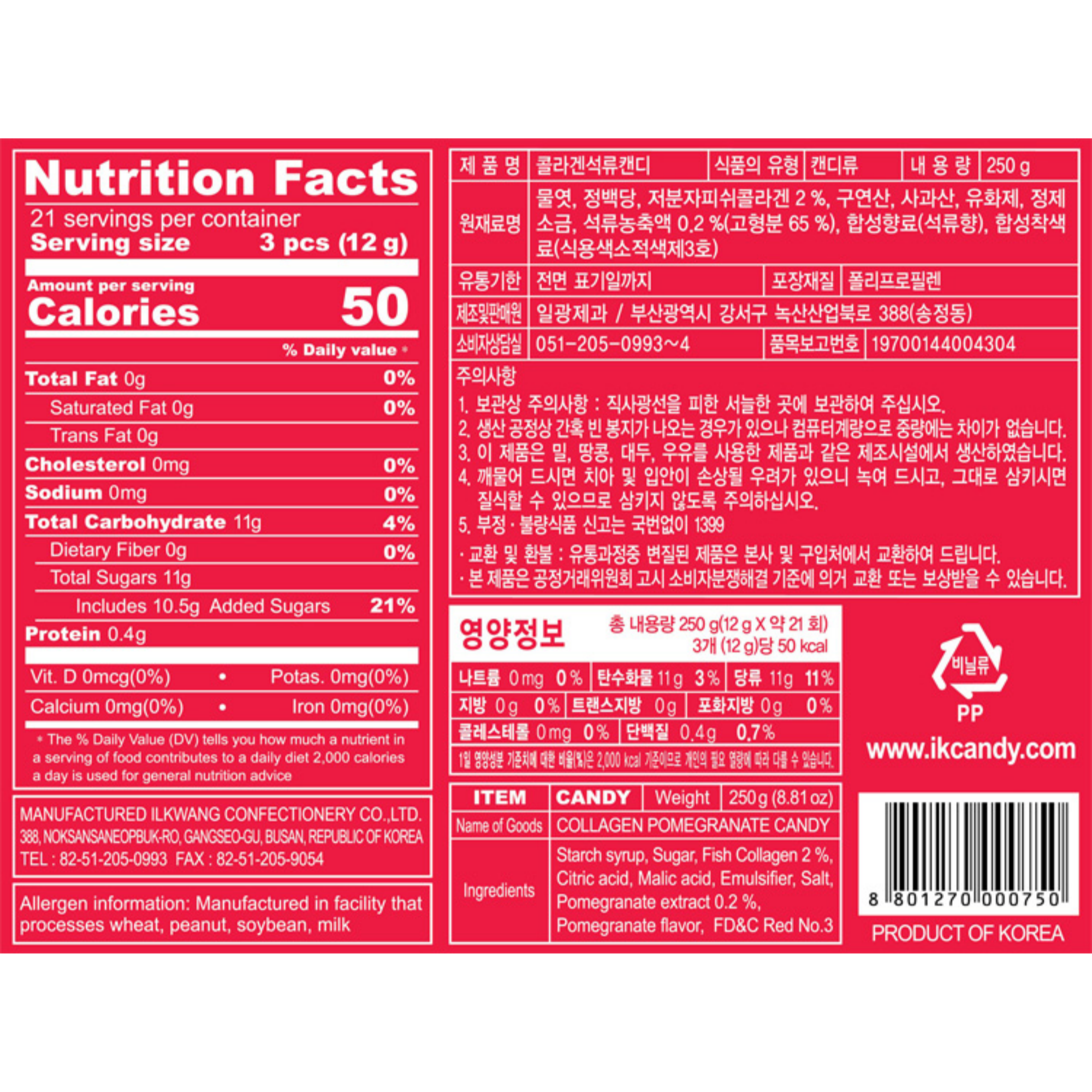 Ilkwang Collagen Pomegranate Candy 250g | Sweet Pomegranate Chews
