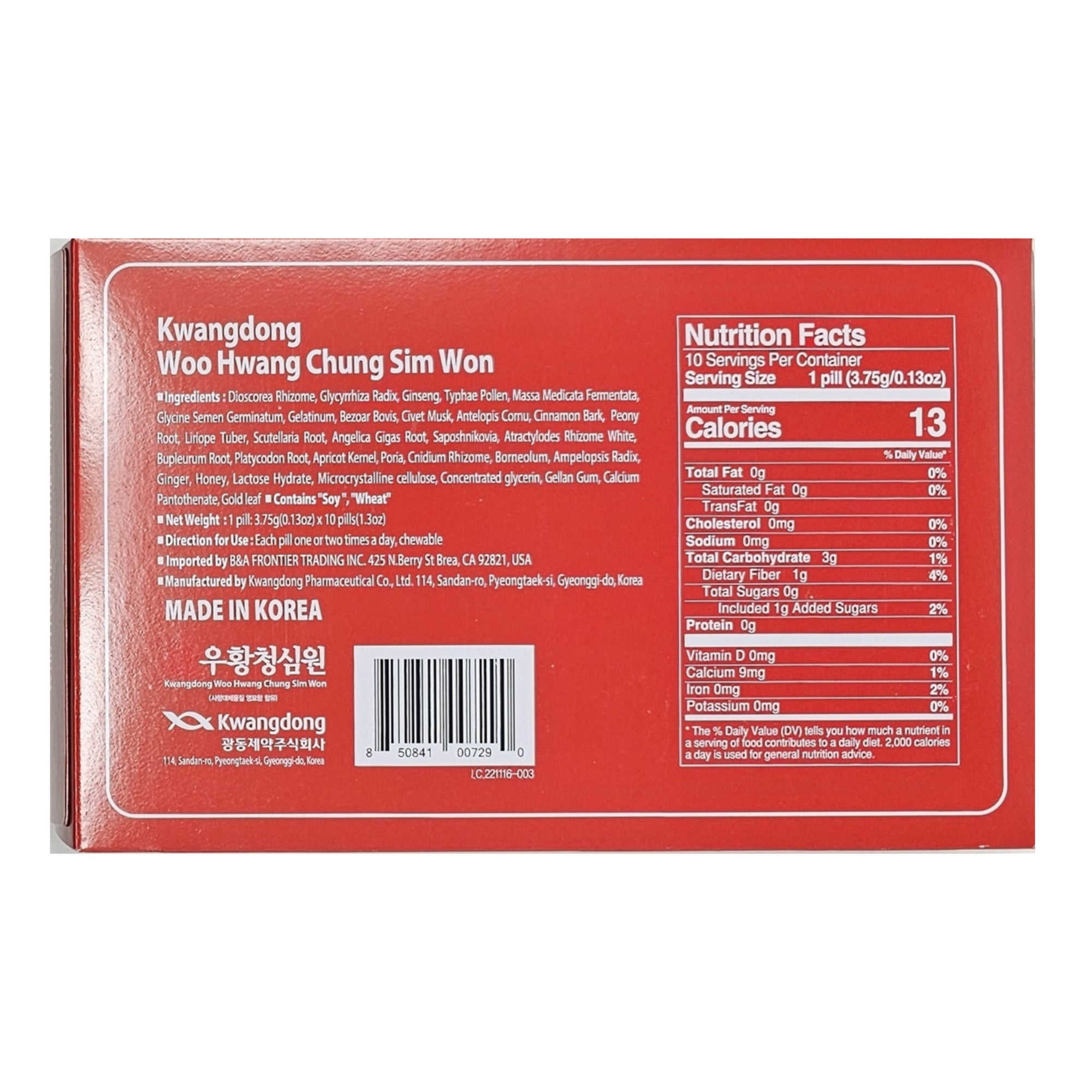 Kwangdong Woo Hwang Chung Won - Authentic Korean Herbal Wellness Pills 우황 청심원