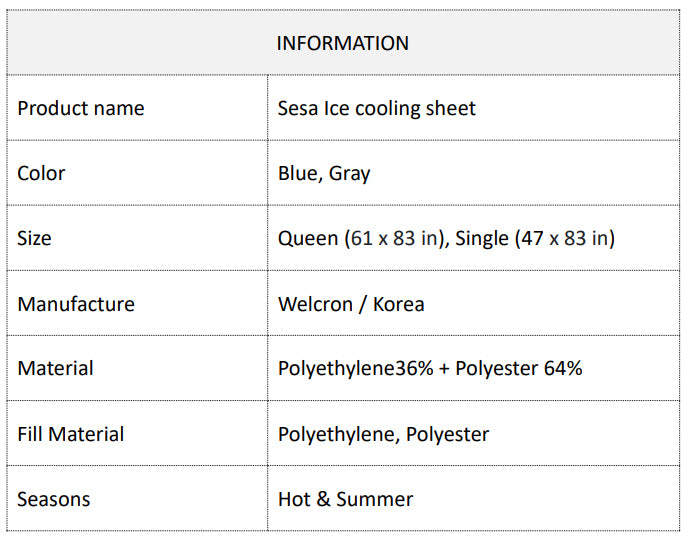 Sesa Ice Cooling Sheet - Single(47x83 in/120x210cm) 세사 아이스쿨링 시트