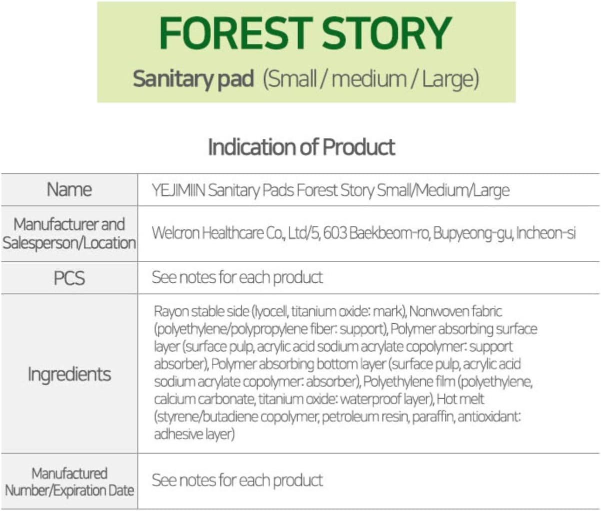 Yejimiin Forest VEOCEL Fiber Cover & Vegan Sanitary Pads for Sensitive Skin